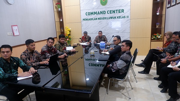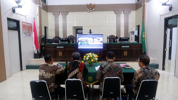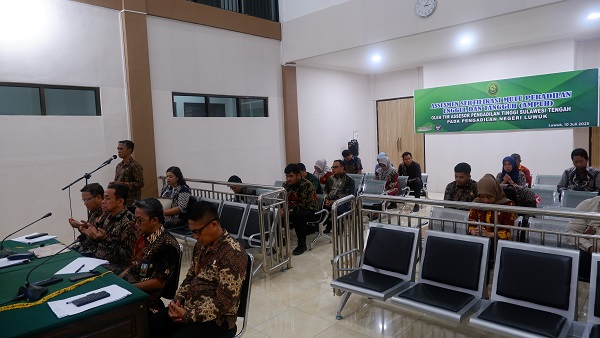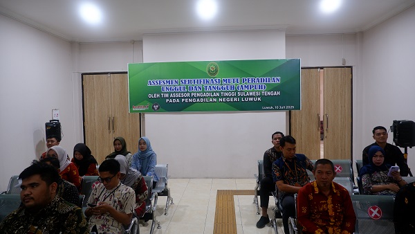 Luwuk, 10 Juli 2025. Pada Hari Kamis Pagi bertempat di Ruang Sidang Hatta Ali, berlangsung kegiatan Asesmen Sertifikasi Mutu Peradilan Unggul dan Tangguh (AMPUH) oleh Pengadilan Tinggi Sulawesi Tengah pada Pengadilan Negeri Luwuk Secara Daring. Tim Asesor Pengadilan Tinggi yang dipimpin oleh Wakil Ketua Pengadilan Tinggi Sulawesi Tengah YM Bapak Sohe, S.H., M.H dengan anggota Bapak Toto Ridarto, S.H., M.H., Bapak Samsuri, S.H., Ibu A. Fatmawati, S.Sos, S.H., Bapak Ahmad Fauzi Dean Sustama, A.Md.M., dan Ibu Indah Nur Rizkiana, A.Md.Ak.. Asesmen dilaksanakan secara Daring dengan membuat Breakout Room pada ZOOM yang dibagi menjadi empat (4) bagian lokasi asesmen yaitu lokasi asesmen pada bagian Ketua, Wakil dan Hakim, lokasi asesmen pada bagian Kepaniteraan, lokasi asesmen pada bagian Kesekretariatan dan lokasi asesmen pada Sarana dan Prasarana yang ada Pada Pengadilan Negeri Luwuk sesuai dengan Checklist AMPUH Tahun 2025. Kegiatan ini ditutup dengan pemaparan hasil Laporan Hasil Asesmen dan foto bersama.