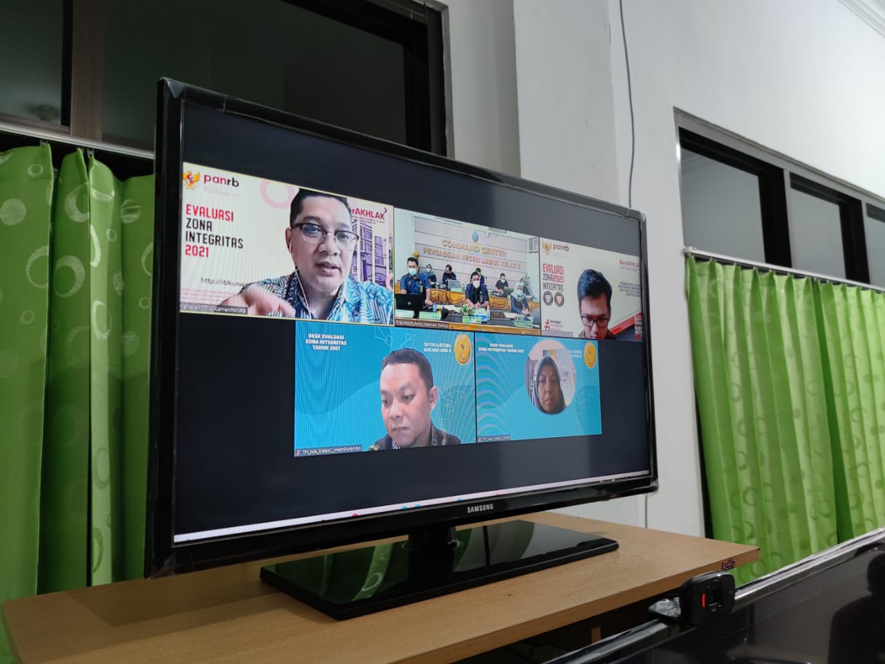 Luwuk, 18/11/2021. Tim Penilai Nasional Kemepan RB RI melakukan Desk Evaluasi Pembangunan Zona Integritas pada Pengadilan Negeri Luwuk secara virtual sebagai tahap penilaian dalam mendapatkan predikat Wilayah Birokrasi Bersih dan Melayani (WBBM) Tahun 2021. Paparan langsung disampaikan oleh Ketua Pengadilan Negeri Luwuk, Bapak Andri Natanael Partogi, S.H.,M.H serta didampingi oleh Koordinator Teknikal, Koordinator Operasional, serta para Koordinator Area Tim ZI Pengadilan negeri Luwuk. (Sumber : PN Luwuk)