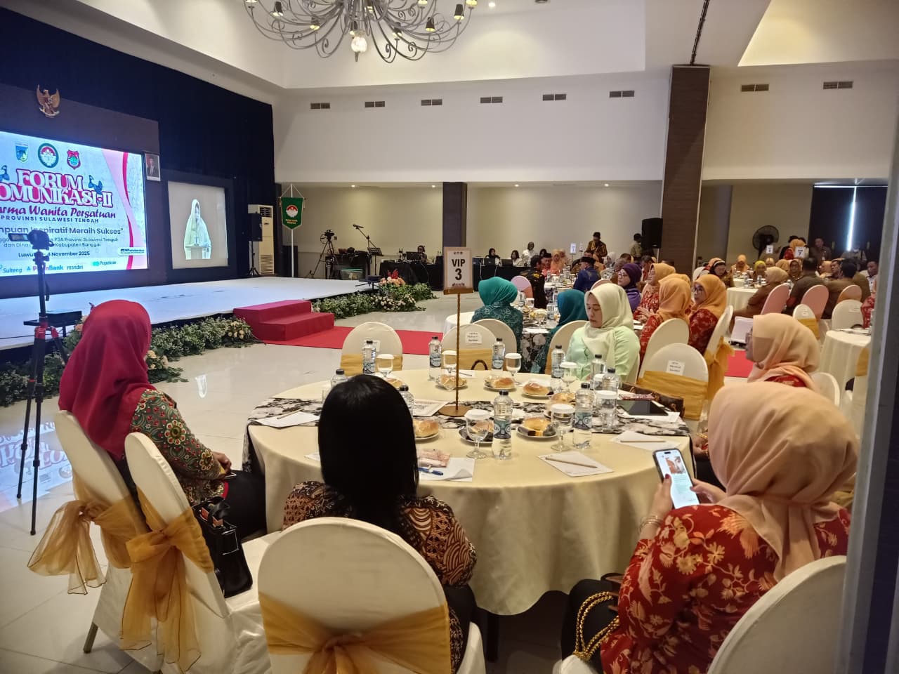 Luwuk, 03 November 2025. Pada hari Senin Pagi bertempat di Hotel Estrella Luwuk, Ketua Dharmayukti Karini Cabang Luwuk Banggai, mengikuti kegiatan Forum Komunikasi II Dharma Wanita Persatuan (DWP) Provinsi Sulawesi Tengah Tahun 2025. Kegiatan ini bertema “Perempuan Inspiratif Meraih Sukses” yang diikuti oleh sekitar 500 peserta dari 13 Kabupaten/Kota se-Sulawesi Tengah. Kegiatan ini dibuka langsung oleh Ketua DWP Sulawesi Tengah.