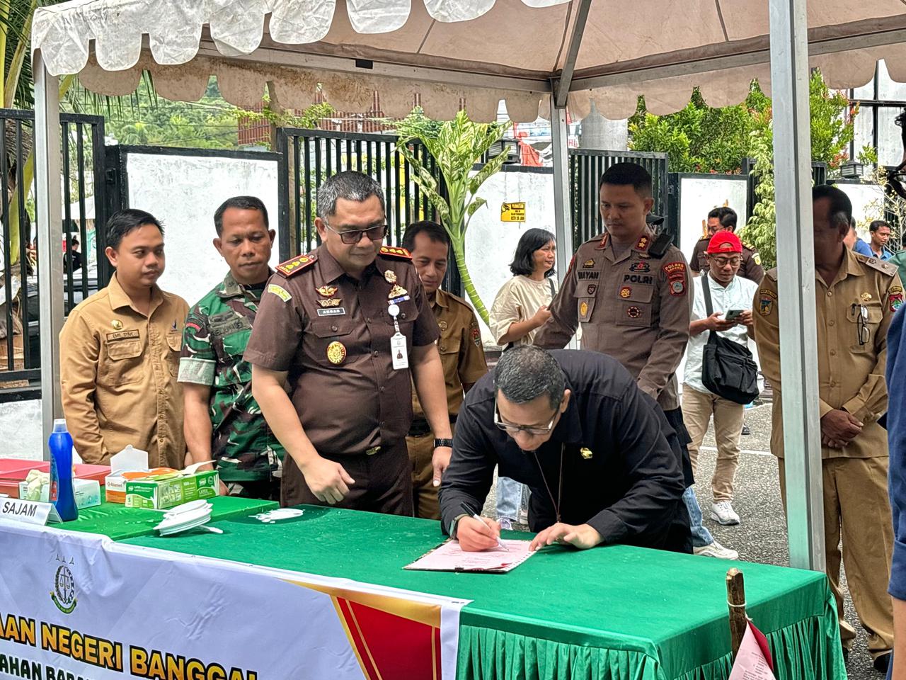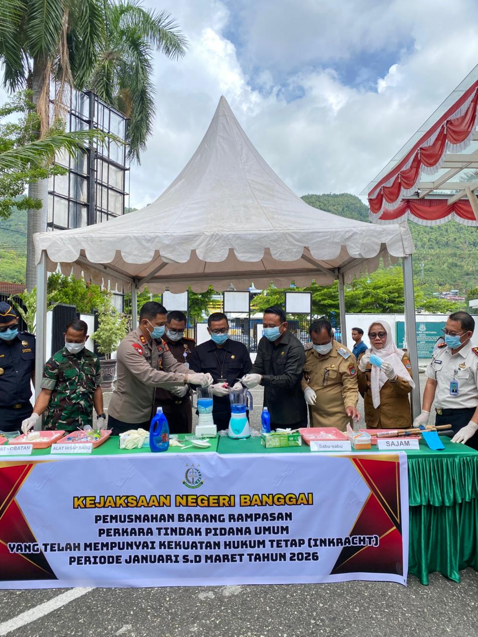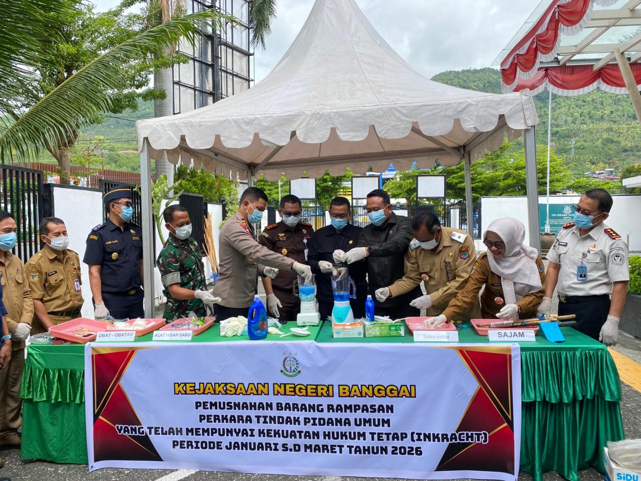Luwuk, 31 Maret 2026. Pada hari Selasa Pagi bertempat di halaman Kantor Kejaksaan Negeri Banggai, Ketua Pengadilan Negeri Luwuk Bapak Suhendra Saputra, S.H., M.H., menghadiri kegiatan Pemusnahan Barang Rampasan Perkara Tindak Pidana Umum Yang Telah Mempunyai Kekuatan Hukum Tetap (INKRACHT) Periode Januari s/d Maret Tahun 2026. Kegiatan ini dihadiri juga oleh Seluruh Aparat Penegak Hukum yang ada di Wilayah Kabupaten Banggai.