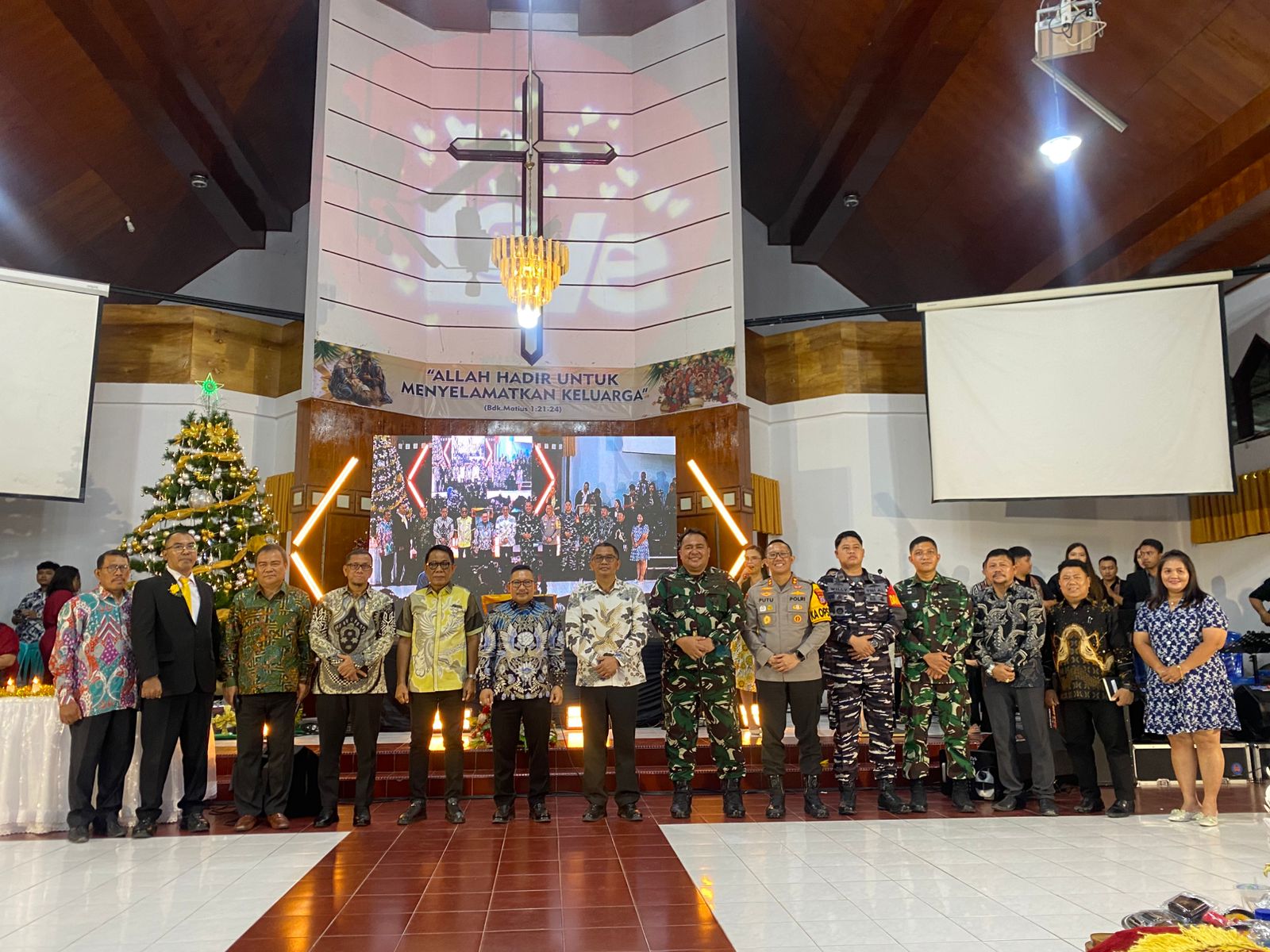 Luwuk, 29 Desember 2025. Pada hari Senin Malam bertempat di Gereja Jemaat GKLB Bukit Zaitun Luwuk, Ketua Pengadilan Negeri Luwuk Bapak Suhendra Saputra, S.H., M.H. menghadiri undangan kegiatan perayaan Natal Oikumene bersama gereja-gereja, KORPRI, TNI, POLRI, BUMN/BUMD, Dharma Wanita Persatuan dan Tim Penggerak PKK Kabupaten Banggai tahun 2025. Kegiatan ini diikuti oleh umat Kristiani dari berbagai denominasi gereja yang ada di Kabupaten Banggai. Tema Natal yang diusung pada tahun ini, “Allah Hadir Untuk Menyelamatkan Keluarga”, menjadi pengingat pentingnya peran keluarga sebagai fondasi utama dalam membangun kehidupan bermasyarakat.