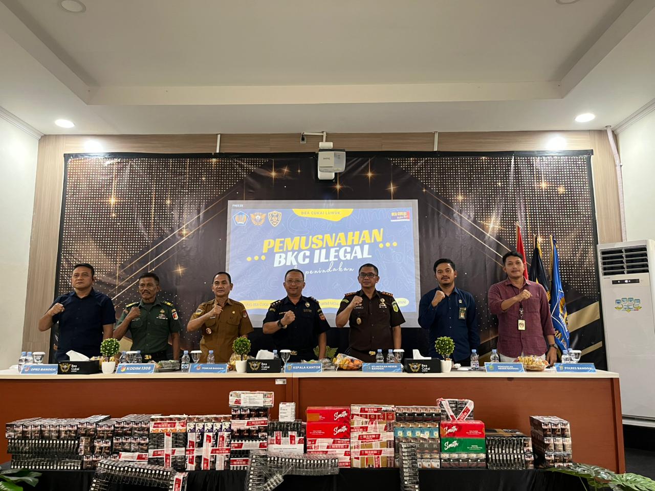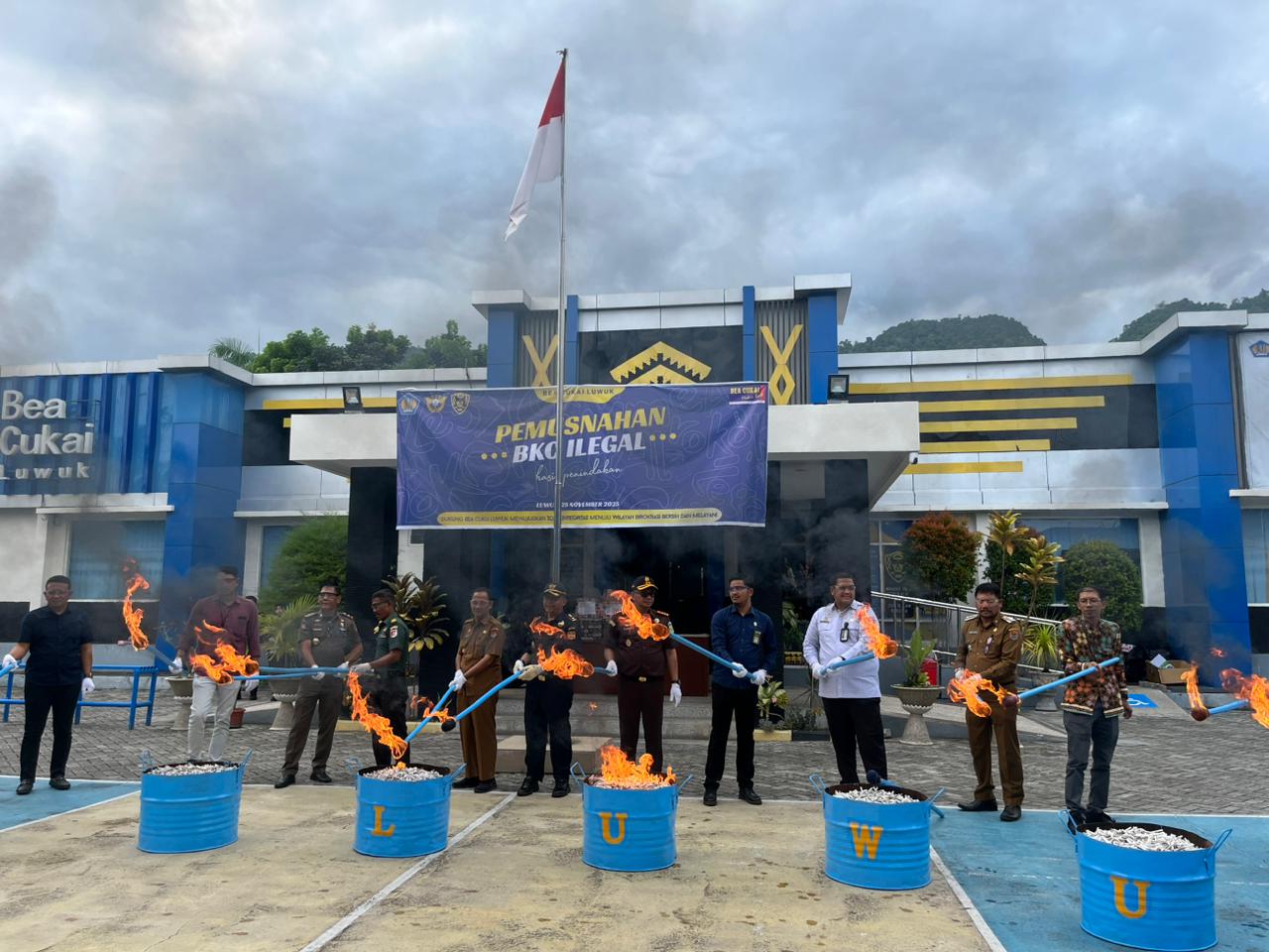 Luwuk, 25 November 2025. Pada hari Selasa pagi bertempat di Halaman Kantor Bea Cukai Luwuk, mewakili Ketua Pengadilan Negeri Luwuk, Hakim Pengadilan Negeri Luwuk Bapak Kurnia Ramadhan Sormin, S.H. menghadiri kegiatan pemusnahan Barang Kena Cukai (BKC) Ilegal eks penindakan oleh Bea Cukai Luwuk. Kegiatan ini dihadiri juga oleh seluruh unsur Forkopimda Kabupaten Banggai.