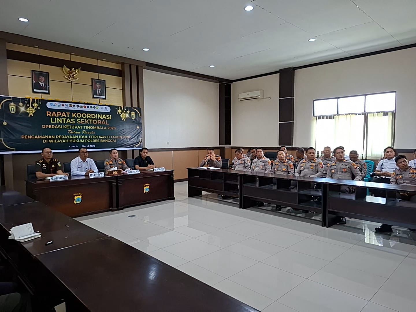 Luwuk, 11 Maret 2026. Pada hari Rabu Pagi bertempat di ruang Aula Rupatama Lt. II Polres Banggai berlangsung kegiatan Rapat Koordinasi Lintas Sektoral dalam Rangka Persiapan Pengamanan Hari Raya Idul Fitri Tahun 1447 H Tahun Baru 2026 di Wilayah Kabupaten Banggai. Kegiatan ini dihadiri oleh Hakim pada Pengadilan Negeri Luwuk Bapak Haidi Anshar, S.H. selaku perwakilan dari Ketua Pengadilan Negeri Luwuk dan dihadiri juga oleh seluruh unsur pimpinan Forkopimda Kabupaten Banggai.