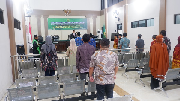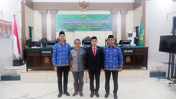 Luwuk, 02 Mei 2025. Pada hari Jumat sore bertempat di Ruang Sidang Utama Pengadilan Negeri Luwuk, berlangsung kegiatan Pengambilan Sumpah dan Pelantikan Calon Pegawai Negeri Sipil (CPNS) menjadi Pegawai Negeri Sipil (PNS) pada Pengadilan Negeri Luwuk Tahun 2025. Kegiatan ini dipimpin langsung oleh Ketua Pengadilan Negeri Luwuk Bapak Suhendra Saputra, S.H., M.H. dan di hadiri oleh Wakil Ketua Pengadilan Negeri Luwuk, Para Hakim, Panitera, Sekretaris, Para Panitera Muda, Para Pejabat Struktural dan Fungsional, Para Staff, dan Para PPNPN Pada Pengadilan Negeri Luwuk. Pengambilan Sumpah dan Pelantikan ini di laksanakan dan di ikrarkan langsung oleh Saudara Fajrial Rahmatullah, S.H. dan Dicka Maulana, S.H.. Kegiatan ini ditutup dengan pemberian ucapan selamat dan foto bersama.