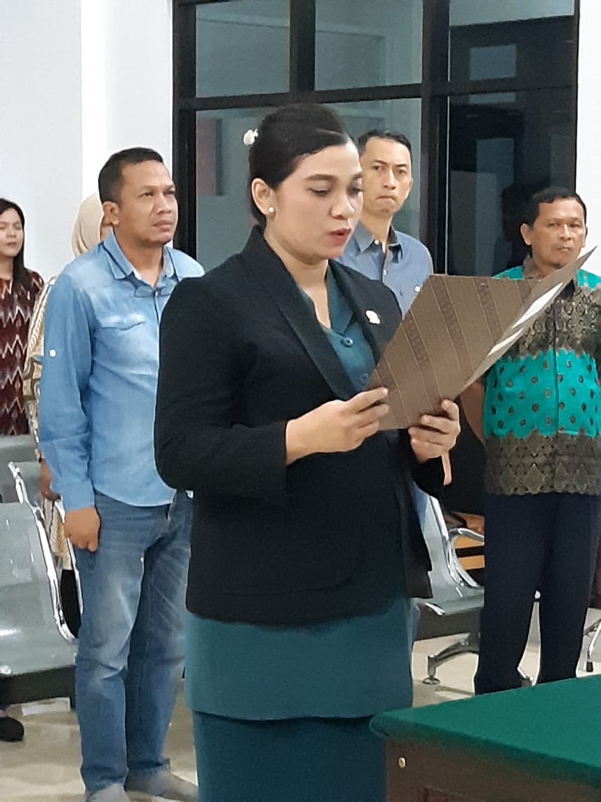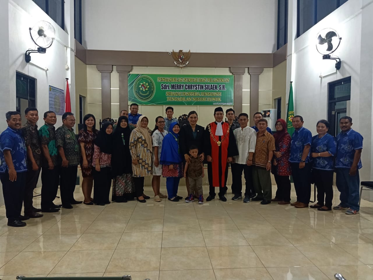 Luwuk, 28/01/2020; Pada Jumat, 28 Februari 2020, bertempat di ruang sidang utama kantor Pengadilan Negeri Luwuk dilaksanakan pelantikan dan pengambilan sumpah Sdri. Merry Chrystin Silaen,S.H., sebagai Panitera Pengganti. Acara diawali dengan menyanyikan lagu Indonesia Raya dan Hyme Mahkamah Agung RI, dilanjutkan dengan pengambilan sumpah yang dipimpin langsung oleh Ketua Pengadilan Negeri Luwuk, Bpk. Ahmad Shuhel Nadjir,S.H.,M.H. Acara ditutup dengan pemberian ucapan selamat dan foto bersama keluarga besar Pengadilan Negeri Luwuk. (Sumber: PN Luwuk/ foto: Davit)
