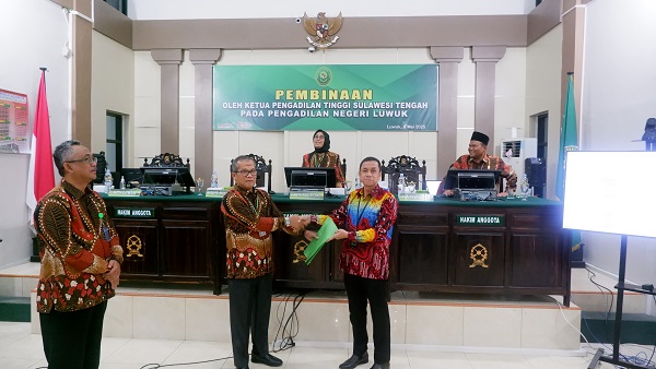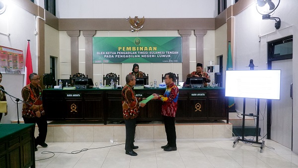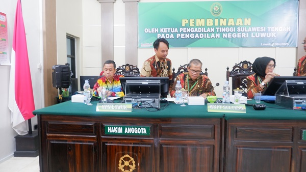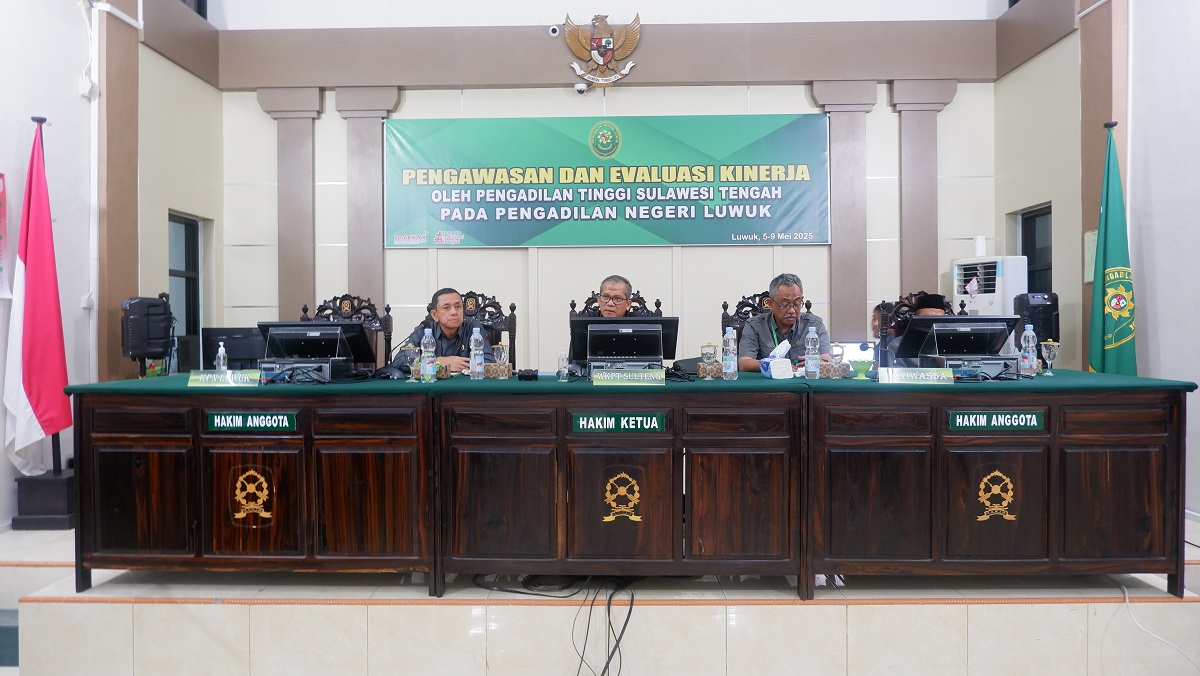 Luwuk, 05 Mei 2025. Pada hari Senin siang bertempat di Ruang Sidang Utama Pengadilan Negeri Luwuk berlangsung kegiatan Pengawasan reguler Semester I Tahun 2025 Oleh Pengadilan Tinggi Sulawesi Tengah Pada Pengadilan Negeri Luwuk. Kegiatan ini berlangsung selama 4 hari dari hari Senin tanggal 05 Mei 2025 sampai dengan hari Kamis tanggal 08 Mei 2025. Pengawasan Reguler ini dipimpin oleh Wakil Ketua Pengadilan Tinggi Sulawesi Tengah YM Bapak Sohe, S.H., M.H., dan didampingi oleh Hakim Tinggi Pengawas Daerah Pengadilan Tinggi Sulawesi Tengah YM Bapak Toto Ridarto, S.H., M.H., turut serta Panitera Pengadilan Tinggi Sulawesi Tengah Bapak Samsuri, S.H., Kepala Bagian Umum dan Keuangan Ibu Andi Fatmawati, S.Sos., S.H., Panitera Pengganti Ibu Saripa Maloho, S.H., Pengelola Penanganan Perkara Bapak Ahmad Fauzi Dean Sustama, A.Md.M., dan Pengolah Data dan Informasi Ibu Indah Nur Rizkiana, A.Md.AK. Kegiatan diawali dengan pembukaan pengawasan oleh Wakil Ketua Pengadilan Tinggi Sulawesi Tengah pada Senin siang bertempat di ruang sidang utama dengan memaparkan tujuan kegiatan Pengawasan yang akan dilakukan. Kegiatan Pengawasan ini dilakukan dengan memeriksa seluruh dokumen pada masing-masing bagian dan melakukan observasi atau pengamatan secara langsung terkait dengan sarana dan prasarana yang ada di kantor Pengadilan Negeri Luwuk. Para pengawas memeriksa dan mewawancarai pegawai atau petugas yang berkaitan dengan objek yang diperiksa. Kegiatan ditutup pada hari Kamis tanggal 08 Mei 2025 dengan pemaparan hasil temuan oleh Tim Pengawasan dari Pengadilan Tinggi Sulawesi Tengah dan ditutup dengan foto bersama.