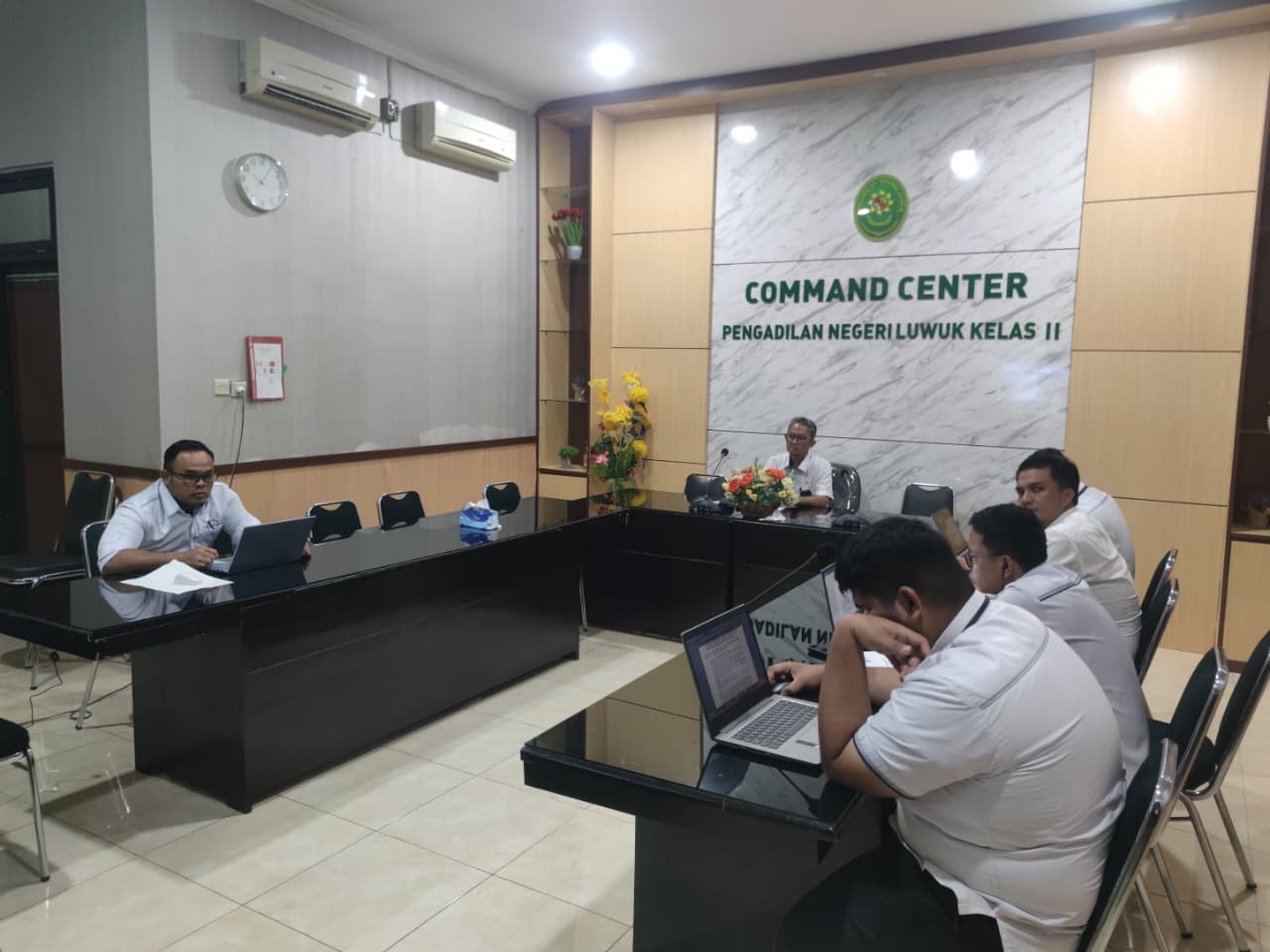 Luwuk, 06 Oktober 2025. Pada hari Senin Pagi bertempat di Ruang Command Center Pengadilan Negeri Luwuk berlangsung kegiatan Pertemuan Rutin Dan Sarasehan Interaktif Badan Peradilan Umum (Perisai Badilum) Episode ke- 10 secara daring. Kegiatan ini di ikuti oleh Wakil Ketua Pengadilan Negeri Luwuk dan Para Hakim Pada Pengadilan Negeri Luwuk secara daring. Kegiatan ini berlangsung dalam rangka mendorong kultur berdiskusi dan berpikir kritis ilmiah bagi para Hakim dan Tenaga Teknis di lingkungan Peradilan Umum. Topik dalam Pertemuan Rutin dan Sarasehan Interaktif Episode ke – 10 ini adalah Mengurai Kompleksitas Eksekusi Perdata “Problematik, Solusi dan Prospek Pembaruan Hukum”. Adapun narasumber dari acara ini yaitu Wakil Ketua Mahkamah Agung Bidang Yudisial YM Bapak H. Suharto., S.H., M.Hum. dengan dipandu oleh Host Hasanudin, S.H., M.H. (Direktorat Pembinaan Tenaga Teknis Peradilan Umum). Diskusi dilaksanakan dalam 4 (empat) sesi yaitu sesi pertama Pembukaan, sesi kedua Pemaparan, sesi ketiga Diskusi Interaktif dan sesi terakhir Penutup.
