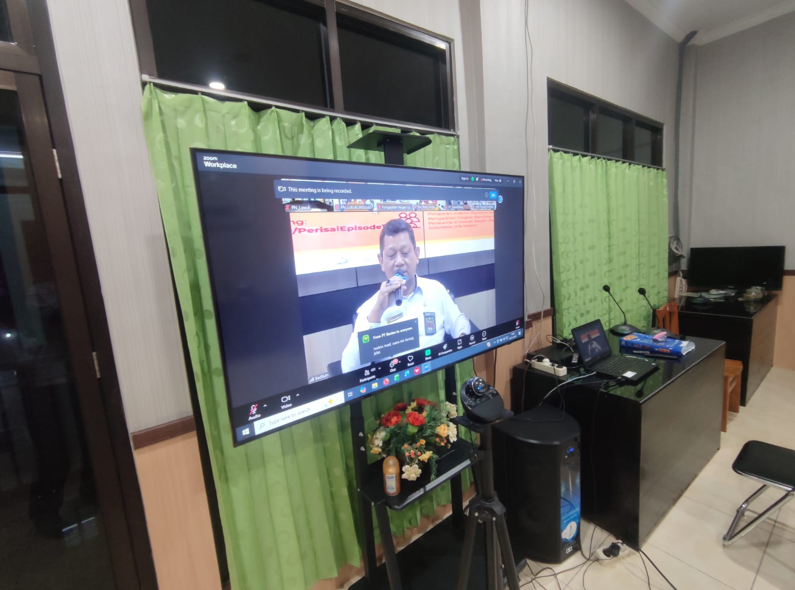 Luwuk, 24 November 2025. Pada hari Senin Pagi bertempat di Ruang Command Center Pengadilan Negeri Luwuk berlangsung kegiatan Pertemuan Rutin Dan Sarasehan Interaktif Badan Peradilan Umum (Perisai Badilum) Episode ke- 11 secara daring. Kegiatan ini di ikuti oleh Wakil Ketua Pengadilan Negeri Luwuk dan Para Hakim Pada Pengadilan Negeri Luwuk secara daring. Kegiatan ini berlangsung dalam rangka mendorong kultur berdiskusi dan berpikir kritis ilmiah bagi para Hakim dan Tenaga Teknis di lingkungan Peradilan Umum. Topik dalam Pertemuan Rutin dan Sarasehan Interaktif Episode ke – 11 ini adalah “Eksekusi Lelang, Permasalahan dan Solusi”. Adapun narasumber dari acara ini yaitu Direltur Penilaian Direktorat Jenderal Kekayaan Negara Kementerian Keuangan Bapak Arik Hariyono, SP.I., M.Si. dan Kepala Sub Direktorat Kebijakan Lelang Direktorat Jenderal Kekayaan Negara Kementerian Keuangan Bapak Dr. Iwan Victor Leonardo Sitindaon, S.H., M.H., dengan dipandu oleh Host Mustamin, S.H., M.H. (Hakim Yustisial, Direktorat Jenderal Badan Peradilan Umum). Diskusi dilaksanakan dalam 4 (empat) sesi yaitu sesi pertama Pembukaan, sesi kedua Pemaparan, sesi ketiga Diskusi Interaktif dan sesi terakhir Penutup.