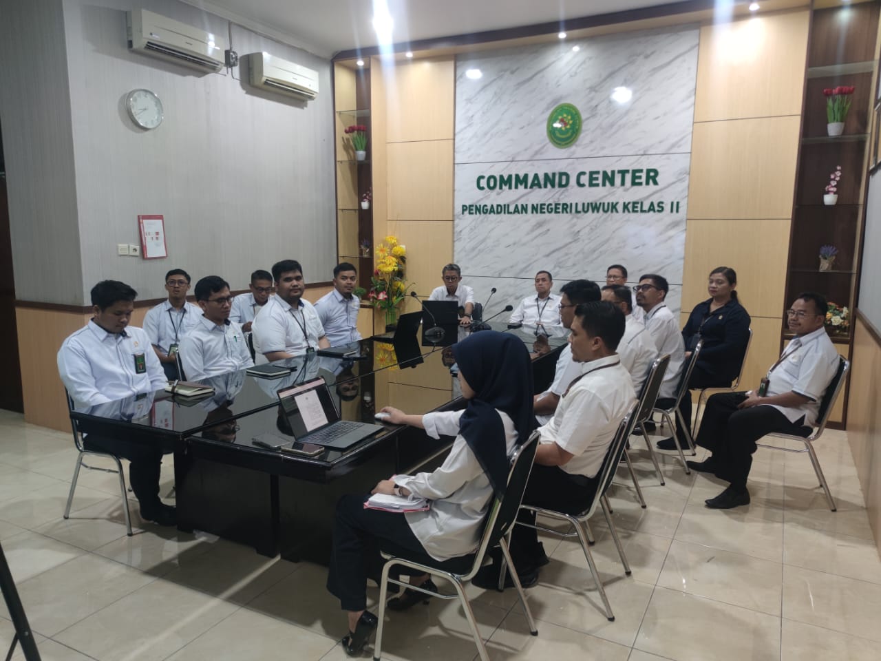 Luwuk, 07 Juli 2025. Pada hari Senin Pagi bertempat di Ruang Command Center Pengadilan Negeri Luwuk berlangsung kegiatan Pertemuan Rutin Dan Sarasehan Interaktif Badan Peradilan Umum (Perisai Badilum) Episode ke- 8 secara daring. Kegiatan ini di ikuti oleh Ketua Pengadilan Negeri Luwuk, didampingi oleh Wakil Ketua Pengadilan Negeri Luwuk, Para Hakim, Panitera, Selretaris, Para Panitera Muda dan Jurusita Pada Pengadilan Negeri Luwuk. Topik dalam Pertemuan Rutin dan Sarasehan Interaktif Episode ke – 8 ini adalah “Pengadilan, Media, dan Keriuhan Netizen”.