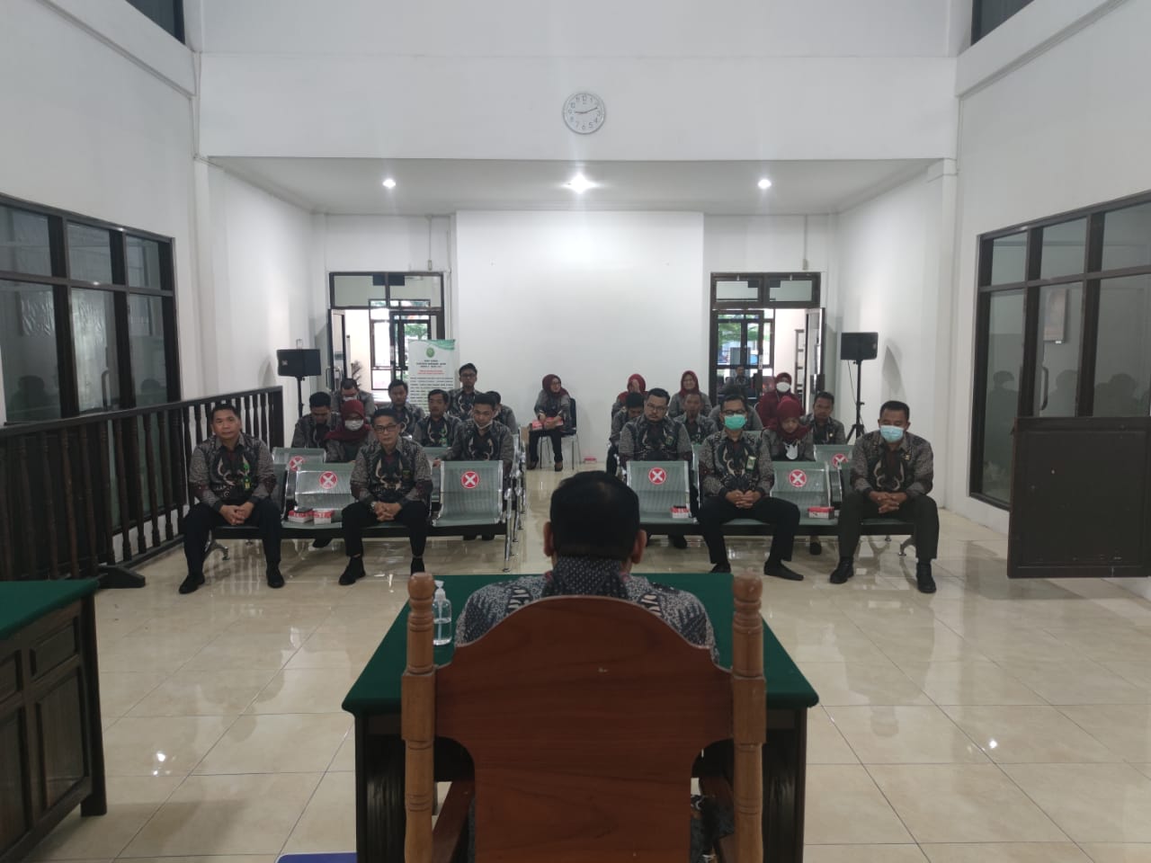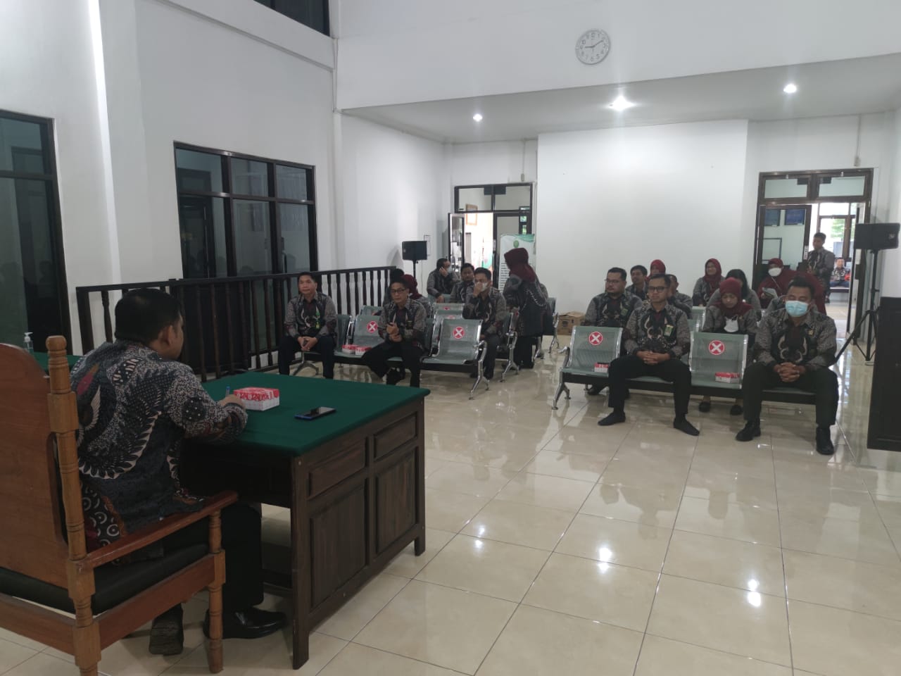 Luwuk, 14/06/2022. Pada hari Selasa pagi bertempat di Ruang Sidang Utama Pengadilan Negeri Luwuk telah di adakan rapat dinas Bulanan pada Pengadilan Negeri Luwuk yang rutin berlangsung di setiap bulannya. Rapat ini dipimpin langsung oleh Ketua Pengadilan Negeri Luwuk Bapak Andri Natanael Partogi, S.H., M.H., yang di ikuti oleh seluruh Hakim, Panitera, Sekretaris, Para Panitera Muda, Para Kasubbag, PP, Jurusita, Karyawan dan karyawati serta para tenaga PPNPN. Adapun yang menjadi agenda dan pembahasan pada kegiatan tersebut yaitu kepada seluruh warga Pengadilan Negeri Luwuk untuk meningkatkan etos kerja, tingkatkan semangat dan kedisplinan dalam bekerja serta tetap mempedomani dan melaksanakan isi dari SK KMA Nomor 1 Tahun 2017 dan Perma Nomor 7, 8, 9 Tahun 2017 dan tetap menjaga kesehatan dalam menghadapi pandemi virus corona dengan segala bentuk variannya.