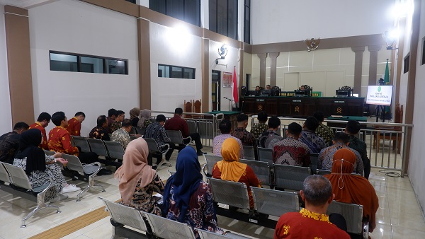 Luwuk, 26 Juni 2025. Pada hari Kamis Siang bertempat di Ruang Sidang Utama Pengadilan Negeri Luwuk telah di adakan rapat Evaluasi Kinerja bulan Juni Tahun 2025 pada Pengadilan Negeri Luwuk yang rutin berlangsung di setiap bulannya. Rapat ini dipimpin langsung oleh Ketua Pengadilan Negeri Luwuk Bapak Suhendra Saputra, S.H., M.H., dan didampingi oleh Wakil Ketua PEngadilan Negeri Luwuk yang diikuti oleh Para Hakim, Panitera, Sekretaris, Para Panitera Muda, Para Kasubbag, PP, Jurusita, Pegawai Struktural dan Fungsional serta para tenaga PPNPN. Rapat di awali dengan pembukaan oleh pembawa acara dilanjutkan dengan menyanyikan lagu Indonesia Raya dan Hymne Mahkamah Agung, kemudian dilanjutkan dengan sambutan dan pemaparan dari Wakil Ketua Pengadilan Negeri Luwuk dilanjutkan dengan sambutan dan pemaparan dari Ketua Pengadilan Negeri Luwuk dan Pemaparan dari Para Hakim Pengawas Bidang pada masing-masing Bidang. Adapun yang menjadi agenda dan pembahasan pada kegiatan tersebut yaitu pemaparan hasil kinerja dan kendala kinerja dari masing-masing bagian di bulan berjalan, pembahasan mengenai Monitoring Implementasi SIPP (MIS), pembahasan mengenai Evaluasi Implementasi SIPP (EIS), penguatan dan pemahaman mengenai PERMA 7, 8 dan 9 serta tidak lupa Ketua Pengadilan Negeri Luwuk menghimbau kepada seluruh warga Pengadilan Negeri Luwuk untuk meningkatkan etos kerja, tingkatkan semangat dan kedisiplinan dalam bekerja dan tetap menjaga kesehatan.
