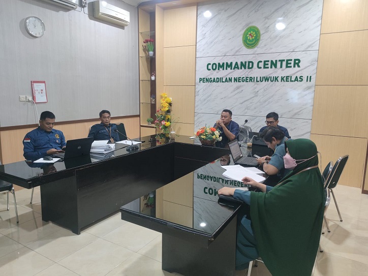 Luwuk, 04 Juni 2025. Pada hari Selasa pagi bertempat di Ruang Command Center Pengadilan Negeri Luwuk, berlangsung kegiatan Rapat Evaluasi Penginputan Data Pelaporan Layanan Hukum Triwulan I Tahun 2025 secara Daring. Kegiatan ini di ikuti oleh Plh. Ketua Pengadilan Negeri Luwuk Bapak Ray Pratama Siadari, S.H., M.H., Plh Panitera, Sekretaris, Operator OMSPAN dan Operator Pelaporan Elektronik pada Pengadilan Negeri Luwuk.