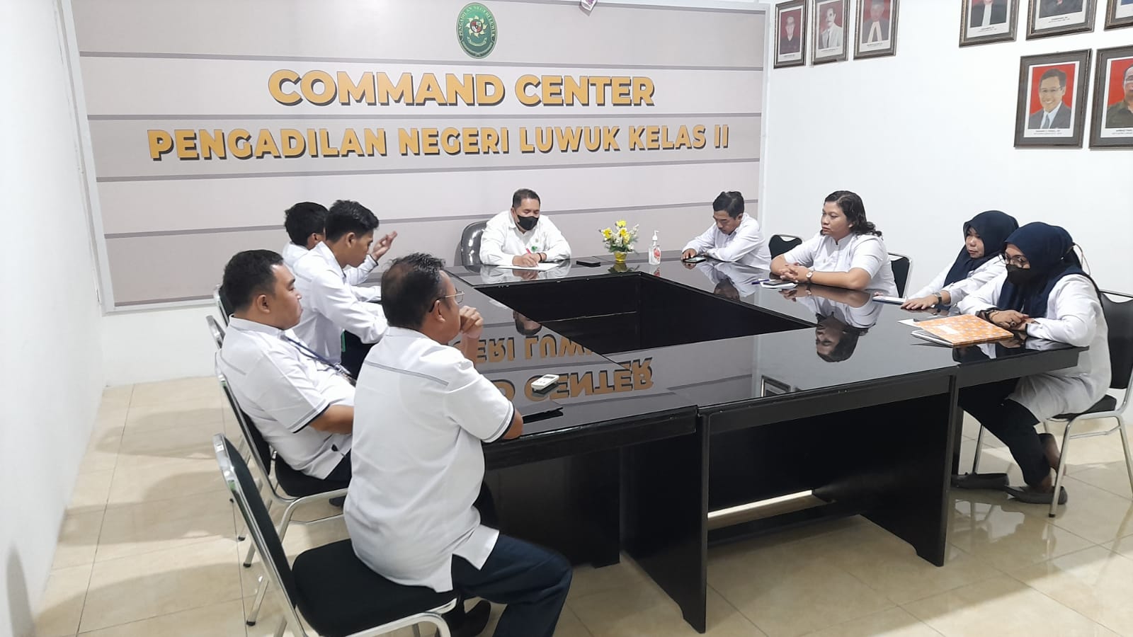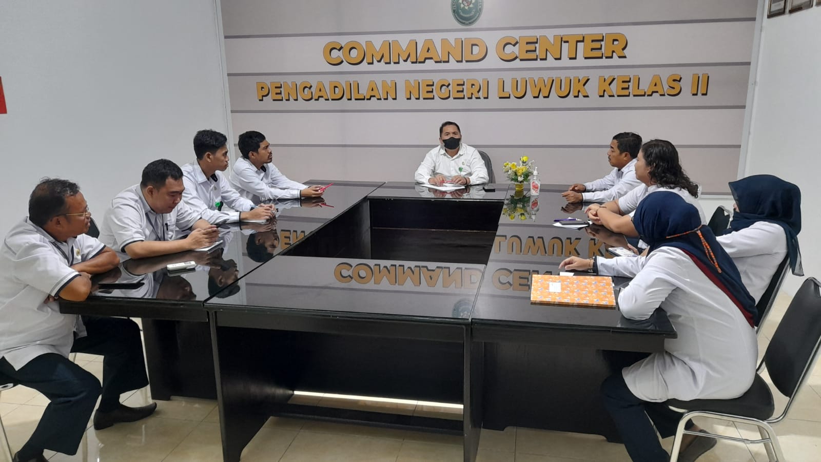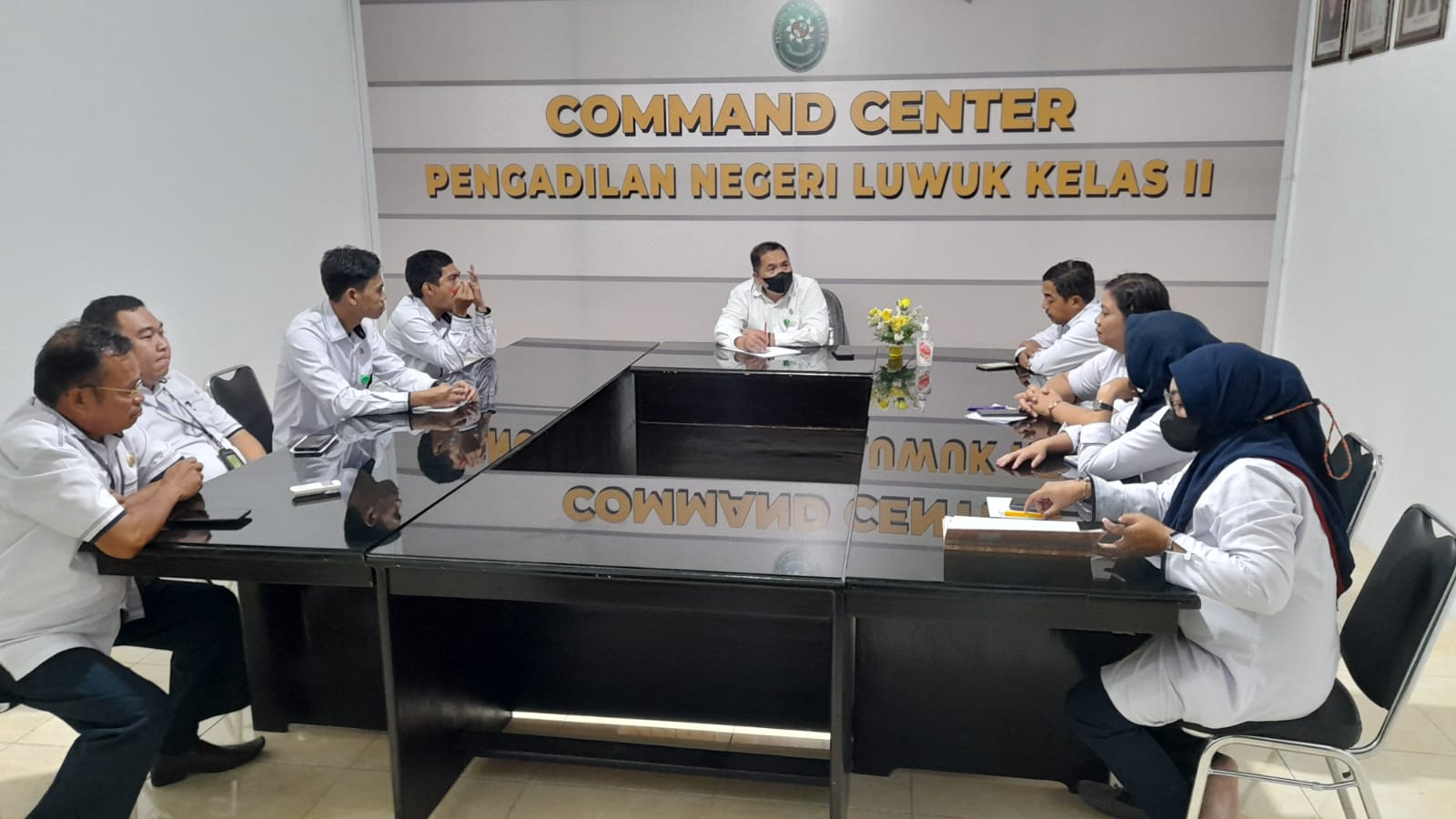 Luwuk, 18 Juli 2022. Bertempat di Ruang Command Center Pengadilan Negeri Luwuk, telah diadakan rapat berjenjang pada bagian Kepaniteraan di PEngadilan Negeri Luwuk yang rutin berlangsung disetiap bulannya. Rapat ini dipimpin langsung oleh Panitera Pengadilan Negeri Luwuk Bapak Tenny Pantow Tambariki, S.H. yang diikuti oleh para Panitera Muda, Para Panitera Penggganti dan Para Jurusita yang ada di Pengadilan Negeri Luwuk.