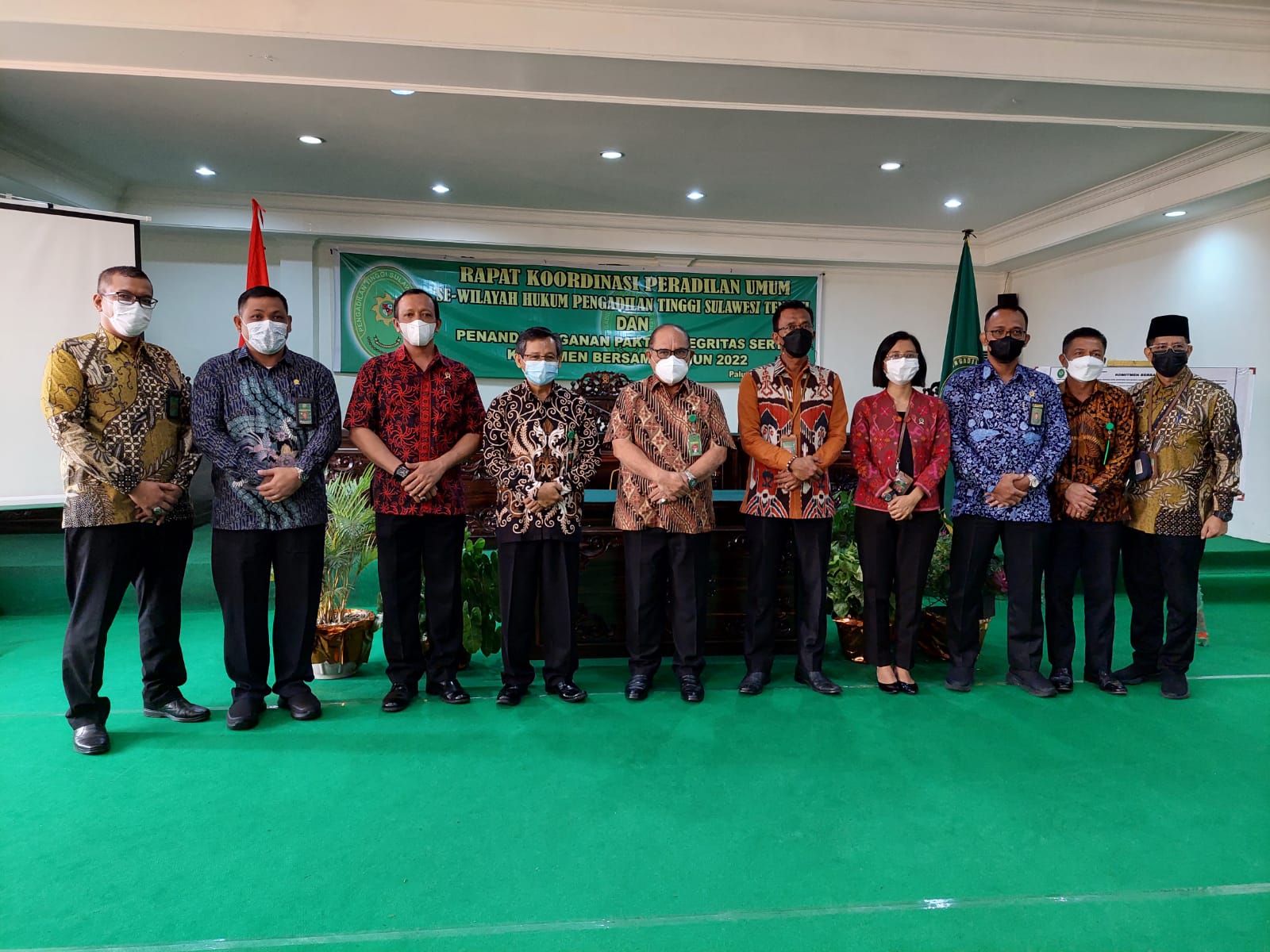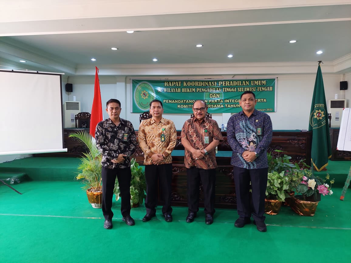 Palu, 14/01/2022. Bertempat di Ruang Sidang Utama Pengadilan Tinggi Sulawesi Tengah pada Jumat Pagi berlangsung kegiatan Rapat Koordinasi dan Penandatanganan Pakta Integritas/Komitmen Bersama se-wilayah hukum Pengadilan Tinggi Sulawesi Tengah. Kegiatan ini di pimpin langsung oleh Ketua Pengadilan Tinggi Sulawesi Tengah dan di ikuti oleh seluruh Ketua, Wakil Ketua, Panitera dan Sekretaris Pengadilan Negeri Se-Wilayah Hukum Pengadilan Tinggi Sulawesi Tengah.