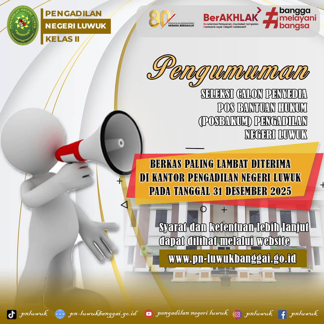Seleksi Terbuka Pengisian Lembaga Pemberi Layanan Pos Bantuan Hukum (POSBAKUM) Pada Pengadilan Negeri Luwuk T.A 2026 Klik Disini
