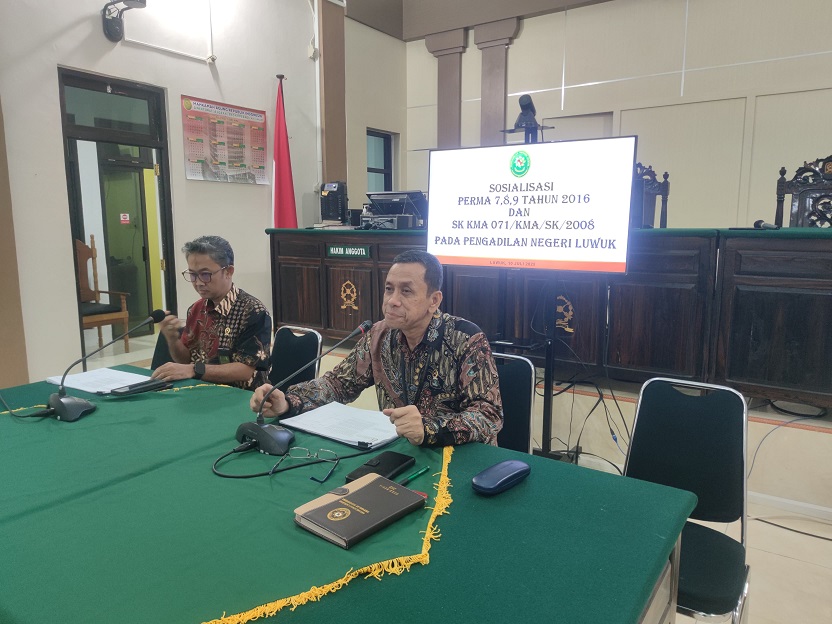 Luwuk, 10 Juli 2025. Pada hari Kamis siang bertempat di Ruang Sidang Hatta Ali, berlangsung kegiatan Sosialisasi Perma Nomor 7, 8, 9 Tahun 2016 dan SK KMA Nomor 071/KMA/SK/V/2008 Pada Pengadilan Negeri Luwuk. Sosialisasi ini dipimpin oleh Ketua Pengadilan Negeri Luwuk dan didampingi oleh Wakil Ketua Pengadilan Negeri Luwuk dan di hadiri oleh Para Hakim, Panitera, Sekretaris, Para Panitera Muda, Para Pejabat Struktural dan Fungsional, Para Panitera Pengganti, Para Jurusita, Para Pegawai dan Para PPNPN Pada Pengadilan Negeri Luwuk. Materi Sosialisasi disampaikan oleh Bapak Ketua Pengadilan Negeri Luwuk dengan pembahasan mengenai Perma Nomor 7 Tahun 2016 yang mengatur tentang Penegakan Disiplin Kerja Hakim Pada Mahkamah Agung RI dan Badan Peradilan Yang Berada Di Bawahnya, Perma Nomor 8 Tahun 2016 tentang Pengawasan dan Pembinaan Atasan langsung di Lingkungan Mahkamah Agung RI dan Badan Peradilan di Bawahnya, Perma Nomor 9 Tahun 2016 tentang Pedoman Penanganan Pengaduan (Whistleblowing System) di Mahkamah Agung RI dan Badan Peradilan di Bawahnya dan SK KMA Nomor 071/KMA/SK/V/2008 tentang Ketentuan Penegakan Disiplin Kerja Dalam Pelaksanaan Pemberian Tunjangan Khusus Kinerja Hakim dan Pegawai Negeri Pada Mahkamah Agung RI dan Badan Peradilan di Bawahnya.