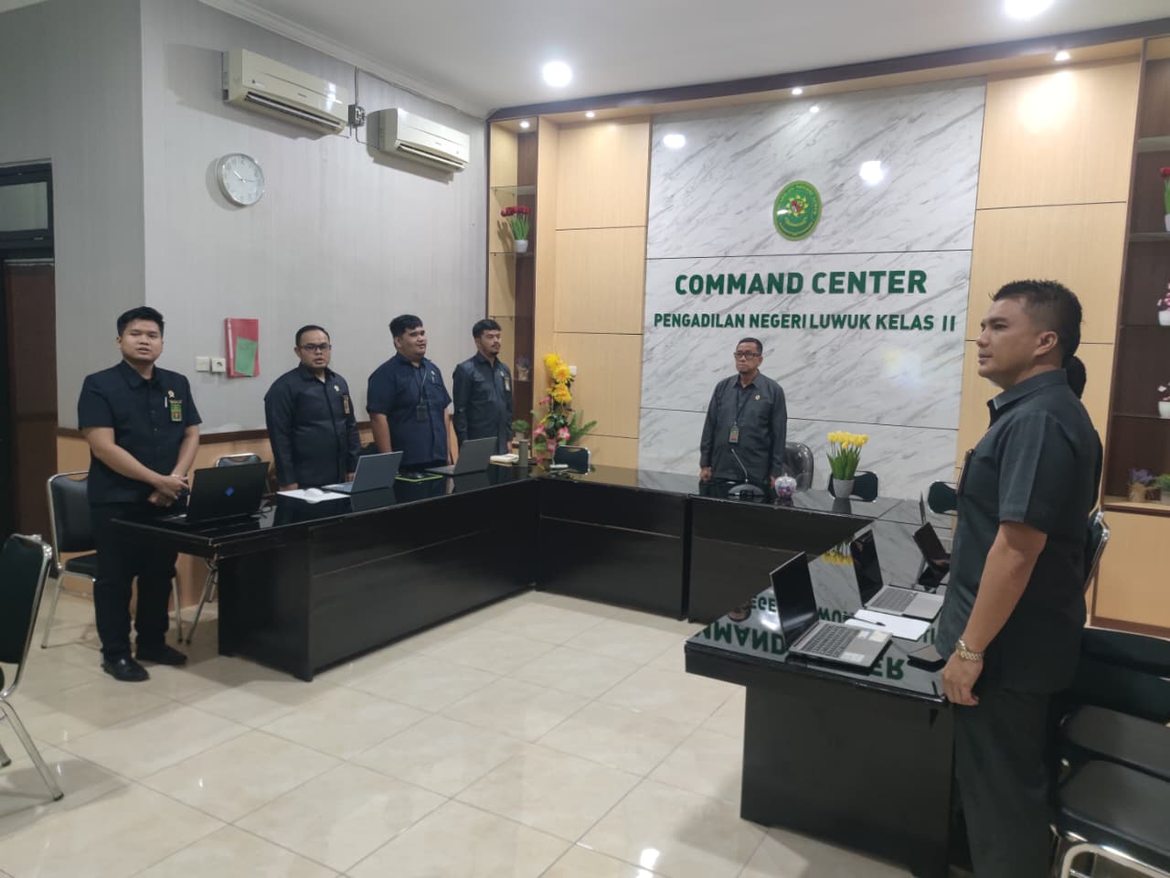 Luwuk, 11 November 2025. Pada hari Selasa Pagi bertempat di Ruang Command Center Pengadilan Negeri Luwuk, berlangsung kegiatan Sosialisasi Program Kepemilikan Hunian Hakim dan Penandatanganan MOU IKAHI – PT.BTN (Persero) Tbk secara Daring. Kegiatan ini di hadiri oleh Ketua Pengadilan Negeri Luwuk Bapak Suhendra Saputra, S.H., M.H., beserta Para Hakim Pada Pengadilan Negeri Luwuk secara Daring.