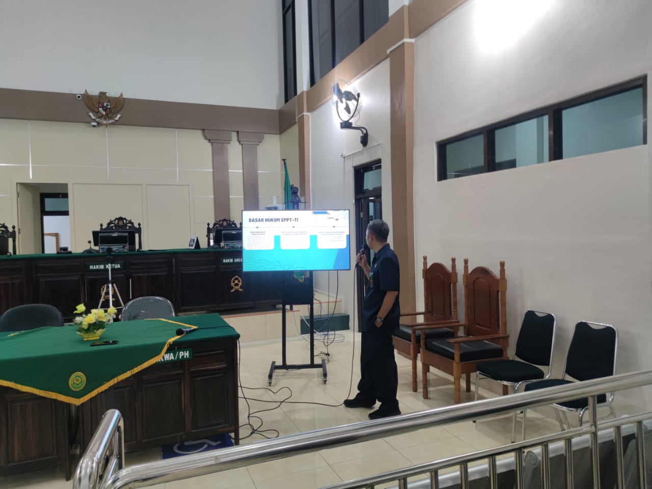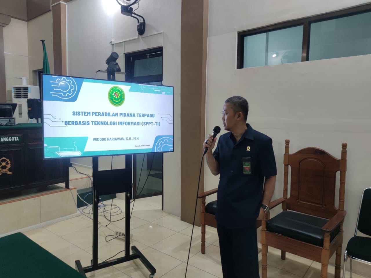Luwuk, 20 Mei 2024. Pada hari Senin pagi bertempat di Ruang Sidang Pengadilan Negeri Luwuk, berlangsung kegiatan Sosialisasi Sistem Peradilan Pidana Terpadu Berbasis teknologi Informasi (SPPTI) Pada Pengadilan Negeri Luwuk. Sosialisasi ini diikuti oleh seluruh Warga Peradilan Pengadilan Negeri Luwuk. Kegiatan ini dibuka oleh Wakil Ketua Pengadilan Negeri Luwuk Bapak Widodo Hariawan, S.H., M.H. dan dilanjutkan dengan penyampaian materi tentang Sistem Peradilan Pidana Terpadu Berbasis Teknologi Informasi (SPPTI). Kegiatan ini ditutup dengan sesi tanya jawab antara pemateri dengan peserta sosialisasi.